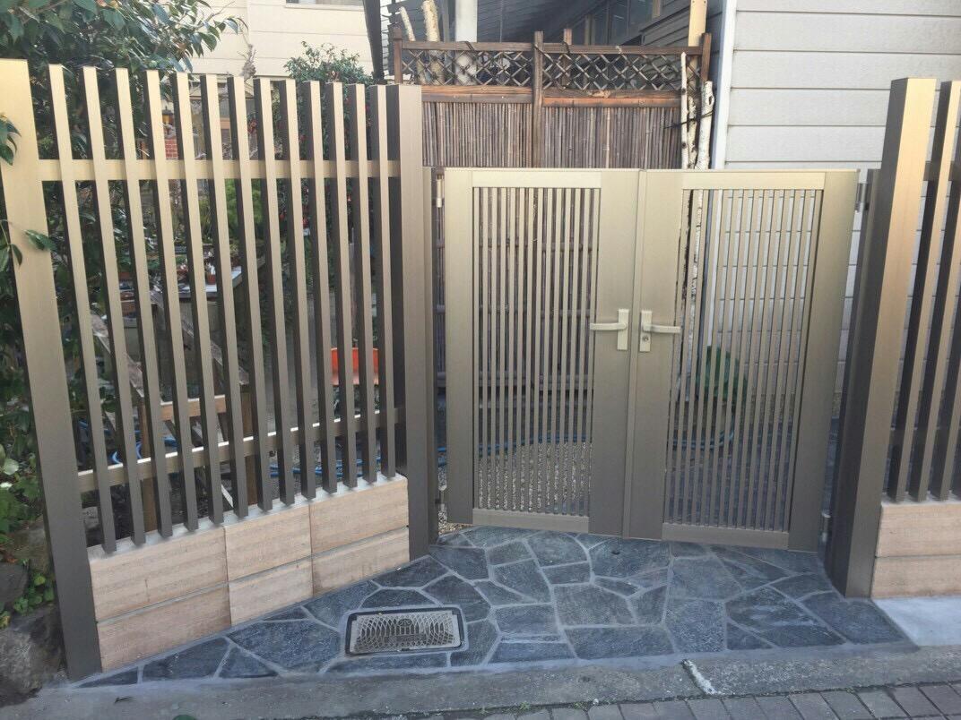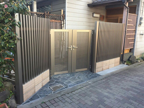 大通りに面したお家の玄関まわりを(お家の顔)美しくしたいとのご要望をいただき、エクステリア・門扉、目隠し縦格子フェンス、外構工事をさせていただきました。