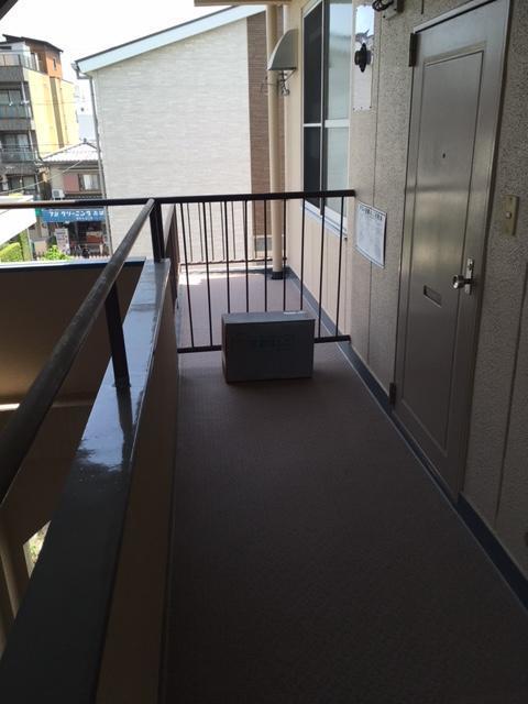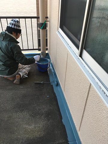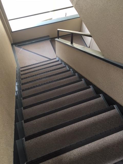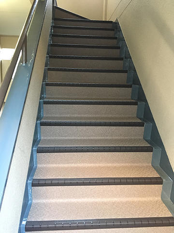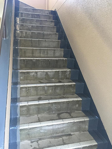 マンションの防水工事をしました。滑らないように、階段に滑り止めを取り付け、廊下、階段に防滑シートを張りました。