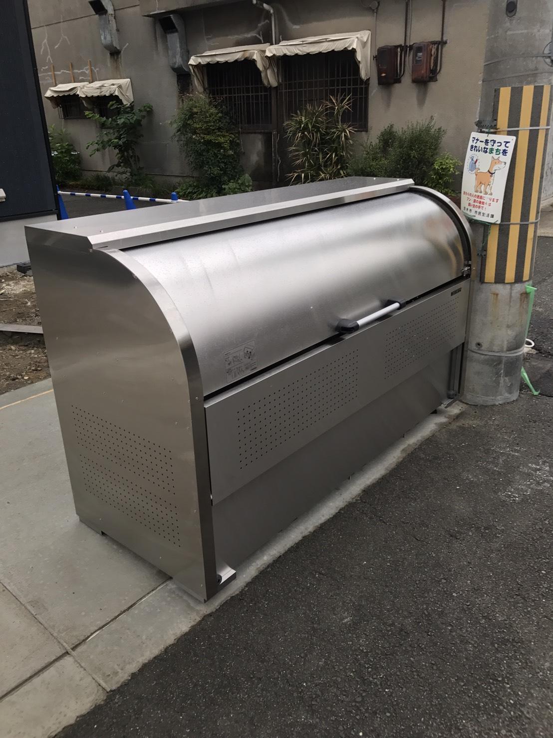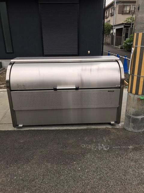 新築建設現場前がごみ収集所になっており、景観、衛生面を改善すべく、ごみ箱を設置させていただきました。