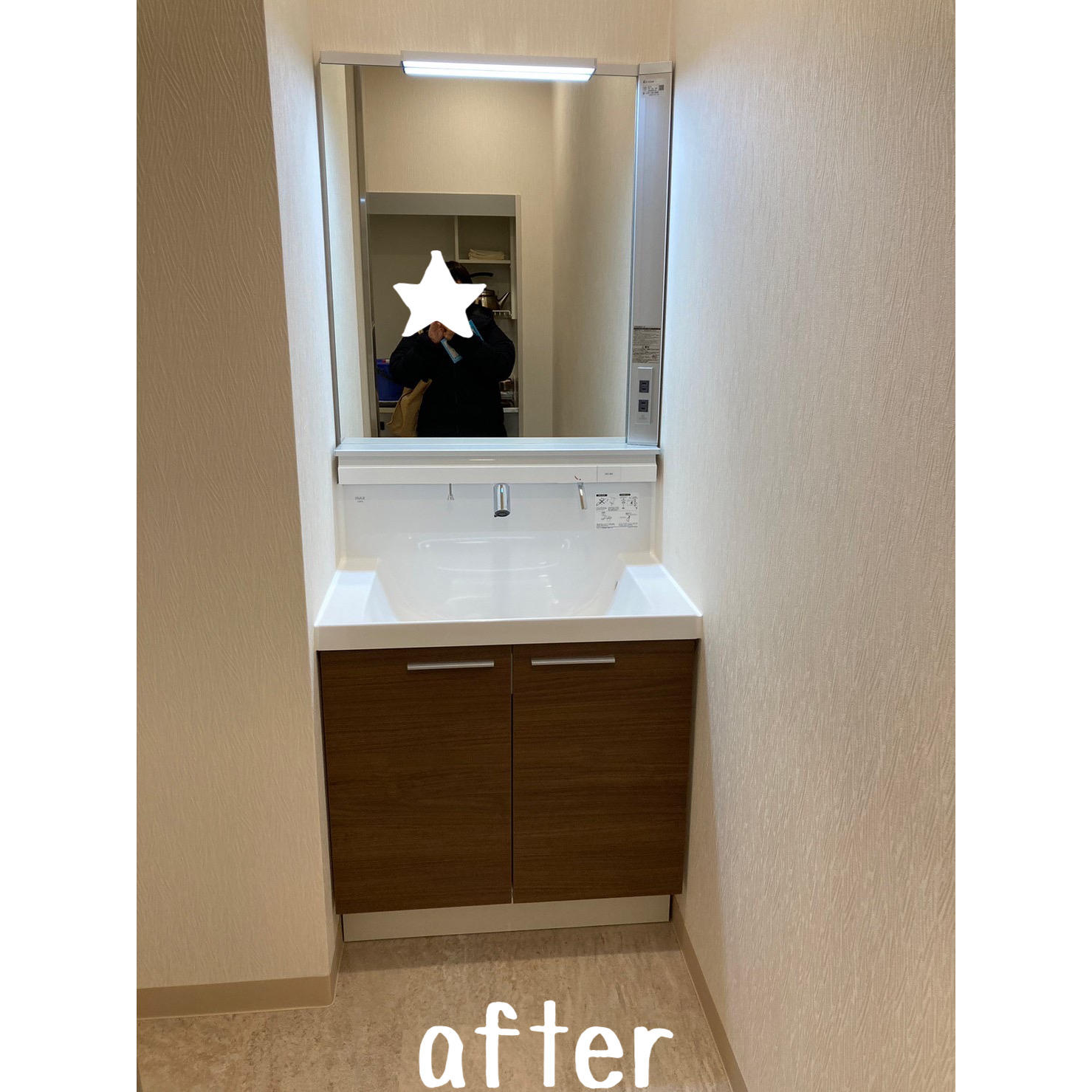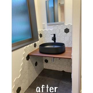 セレモニーホールのリフォーム工事のご依頼いただきました。 洗面ボウルのブラック、タイルとの組み合わせがとっても素敵でおしゃれな空間へ生まれ変わりました。 ■洗面ボウル(カクダイ) ■水栓(カクダイ) ■タイル(名古屋モザイク工業) ■床クッションフロア(シンコール) ■シャワーユニット(リクシル) ■洗面化粧台(リクシル エルシイW750)
