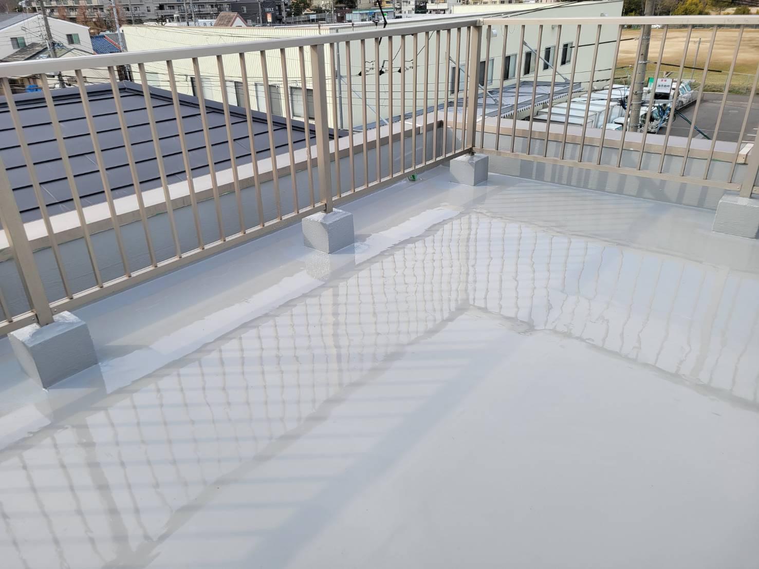 塗膜が剝がれていた屋上が綺麗に生まれ変わりました。ウレタン防水の絶縁後方にて施工。