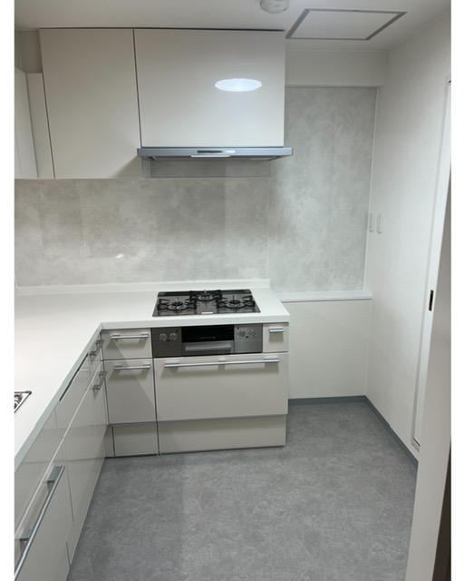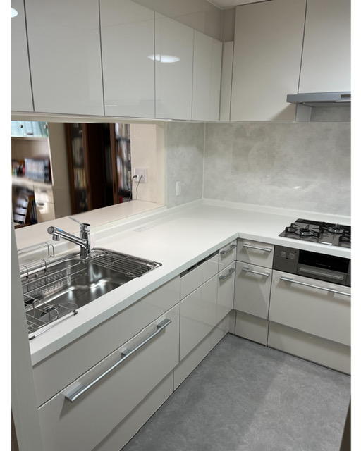 LIXILのリシェルSIを採用。リシェルSIだけの機能として壁付けL型コーナー用キャビネットが決め手となりました。その他にも、軽い力で楽に開く「らくパッと収納」と「よごれんフード」など使いやすさの観点からお選びくださいました。