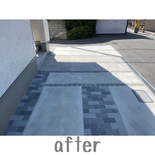 芝生と植栽がありましたが、お手入れが大変という理由から溝はピンコロで施工。 土間は、インターロッキングで施工。 仕上がりは大変満足していただきました。