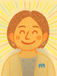 笑顔で明るく頑張ります。 スタッフからの紹介:周りの動きをよく見て仕事をしてくれて、程よい距離感で接してくれる社内の人に安心感を与える人です。