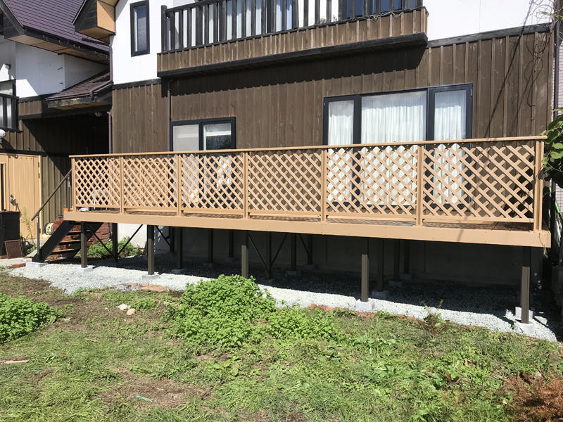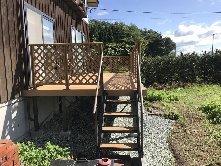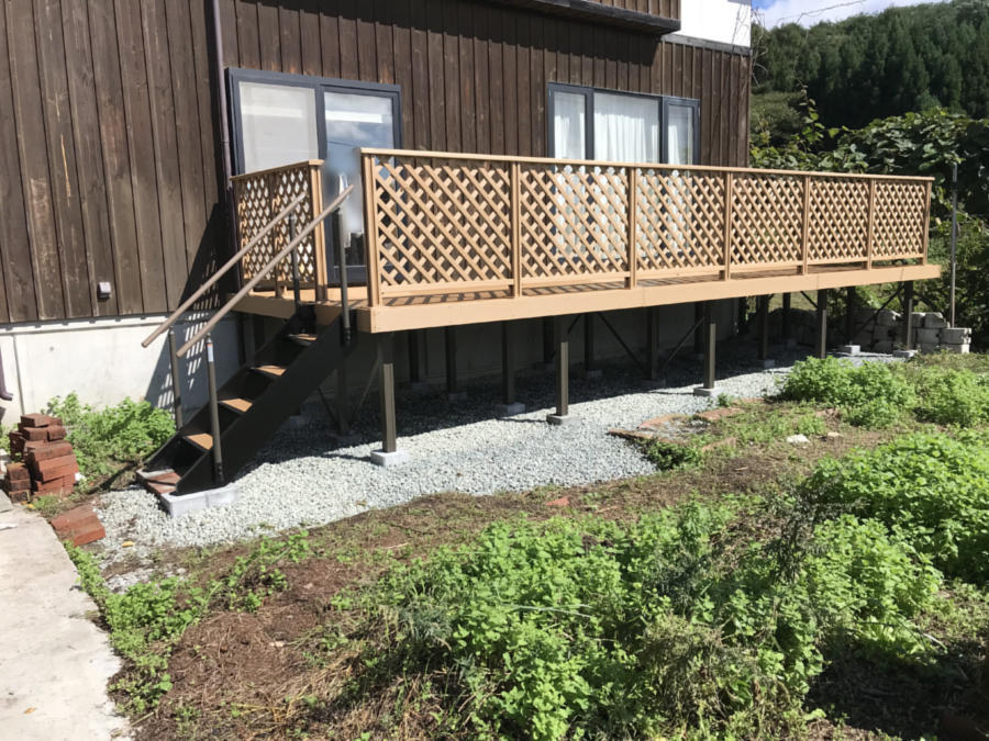 古くなった木造のウッドデッキの解体も含めて施工いたしました。