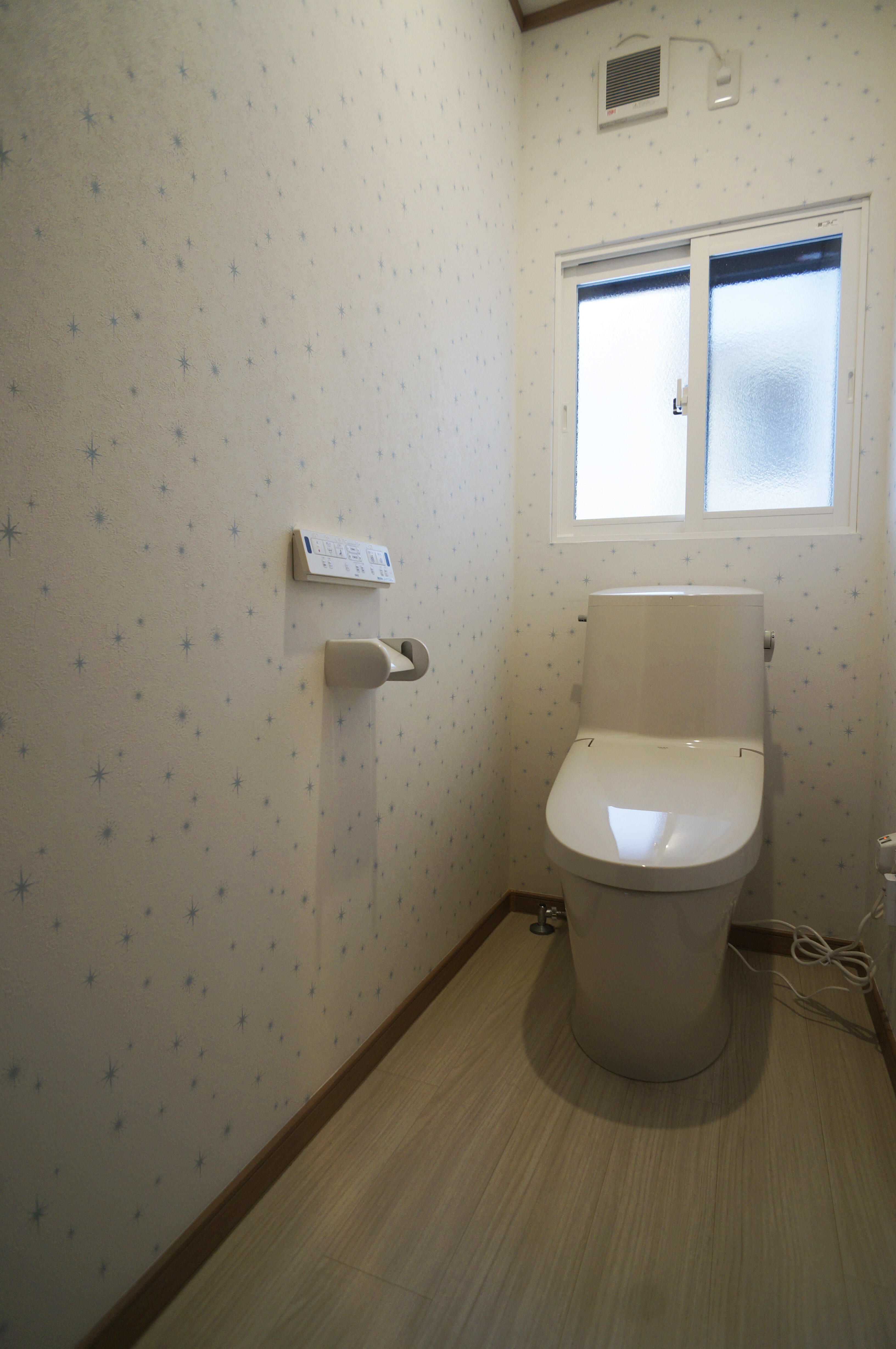 壁紙、クッションフロアも貼り替え、明るく綺麗なトイレ空間となりました。