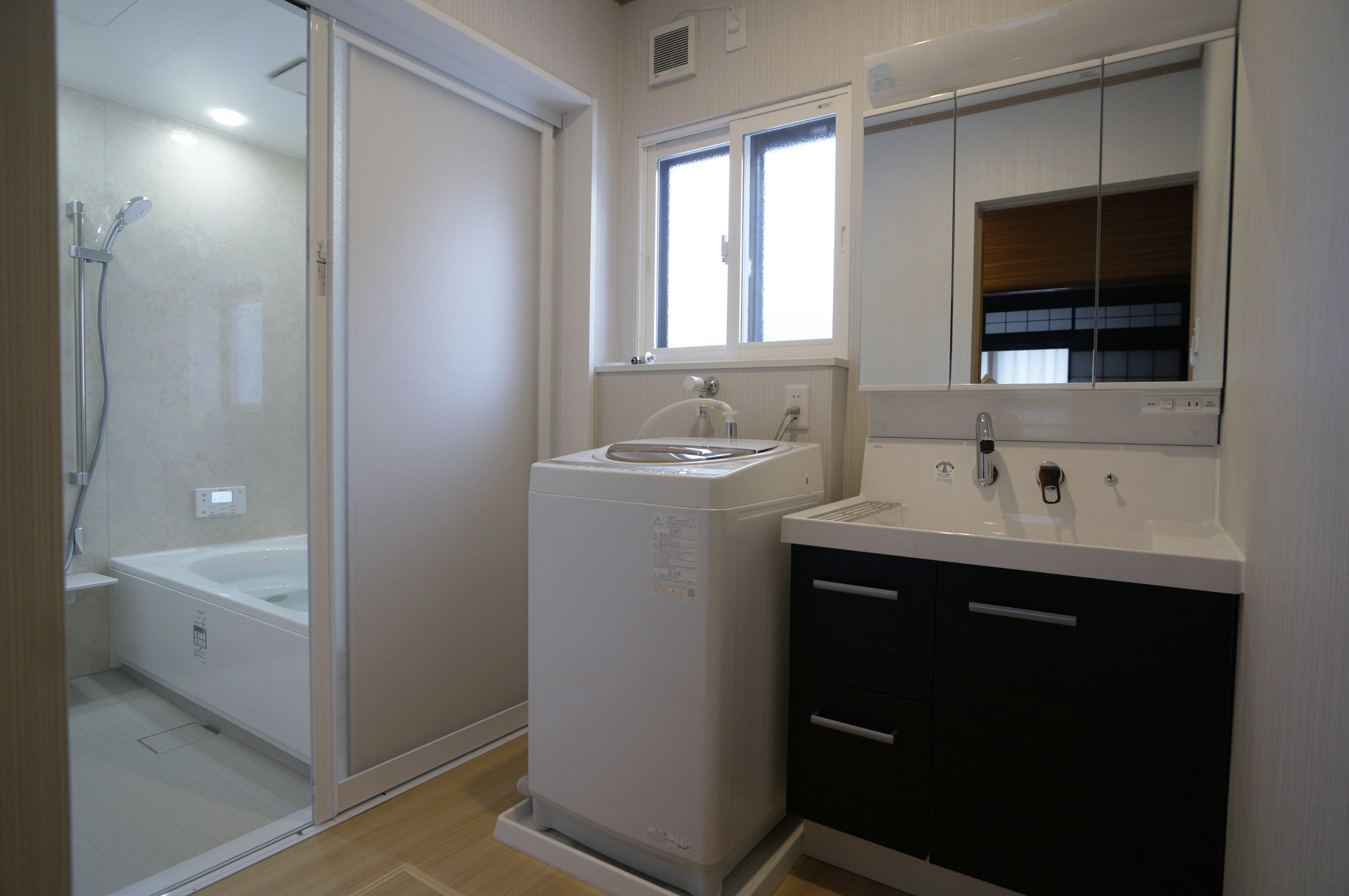 ピアラの三面鏡を設置。以前よりも使い勝手のよい洗面化粧台になりました。床もクッションフロアを張り替え、明るくなりました!