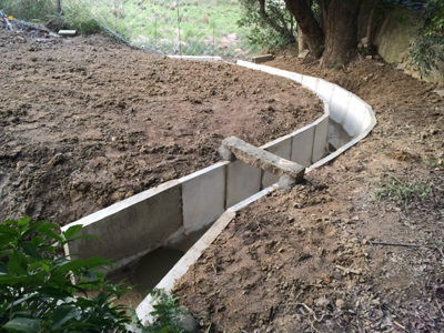 自然水路が崩壊しかけているので、U字溝を設置した水路の施工事例です。