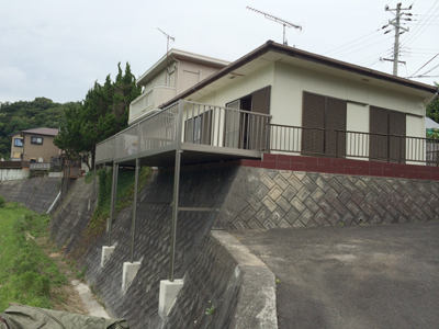 海の近くの平屋で、ベランダなかったので擁壁部分にベランダを設置した施工事例です。洗濯物を干したり、海を眺めながらBBQなど、使い勝手も良くなります。