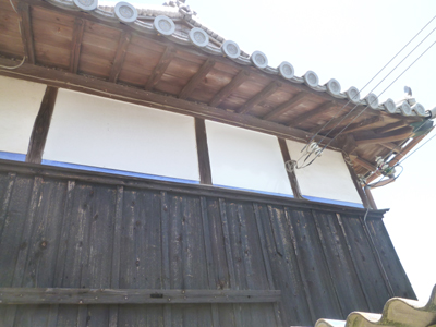 強風で壁部の漆喰がめくれてしまった為、カラートタンで修繕をした施工事例です。