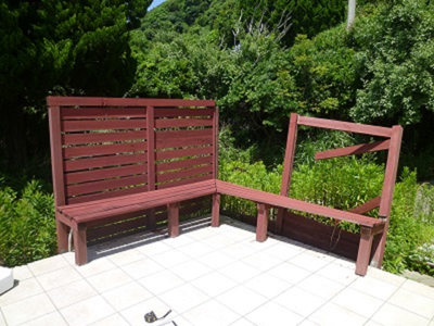 海のすぐそばにある為、雨風にさらされて傷んでしまった木製ベンチを、新たに作成した施工事例です。塗装は、施主様がDIYで行います。