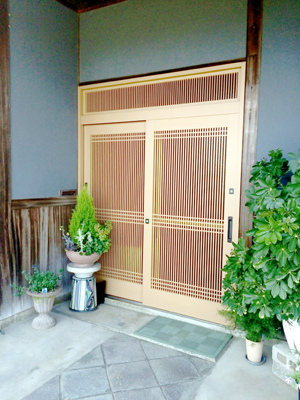 古くなった木製の玄関引戸をアルミ玄関引戸『リシェント』に交換した施工事例です。リフォーム用玄関サッシ『リシェント』では、1日で施工ができます。