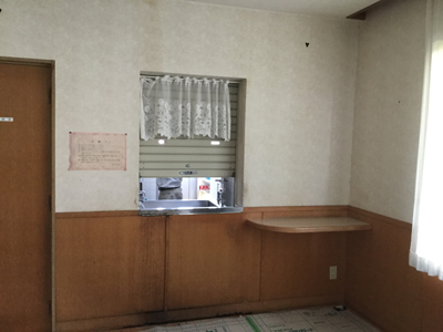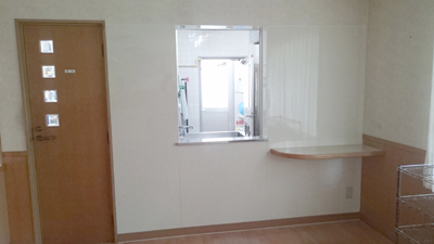 宿泊施設の食堂(厨房)の古くなった下膳口の壁のリフォーム事例です。