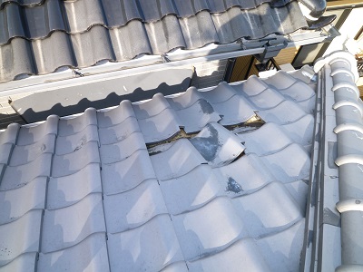 屋根瓦がめくれ、ルーフィングが破れていたため、修繕した施工事例です。
