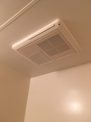 古くなった浴室換気乾燥機を交換した施工事例です。後継機種の為、約1時間で施工できました。