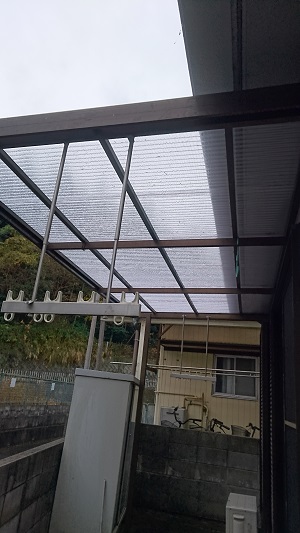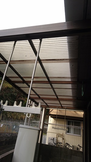 テラスの波板が古くなったため、新しい波板に貼り替えたリフォーム事例です。