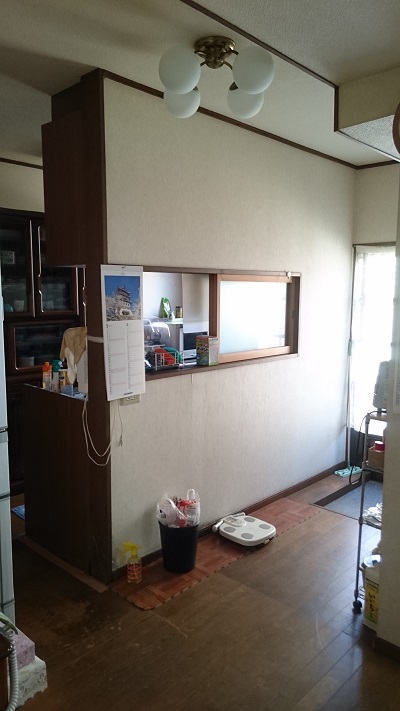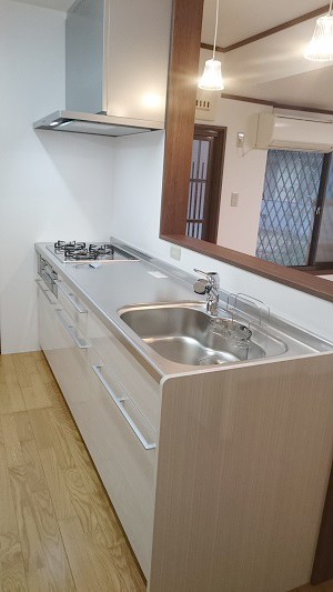 キッチンの取替えに伴い、キッチンをオープンにし、リビングをリフォームした事例です。照明やフローリングも取替え、いっそう、キッチンとリビングとの解放感が生まれました。