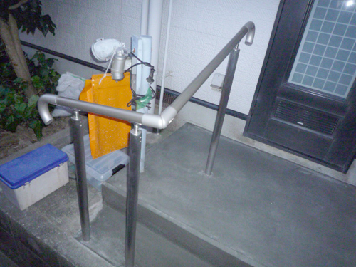 外まわりの足元が高齢者には危険だったため、階段を整え、新しくテスリを取付けた施工事例です。上がり下りが安全で、楽になりました。