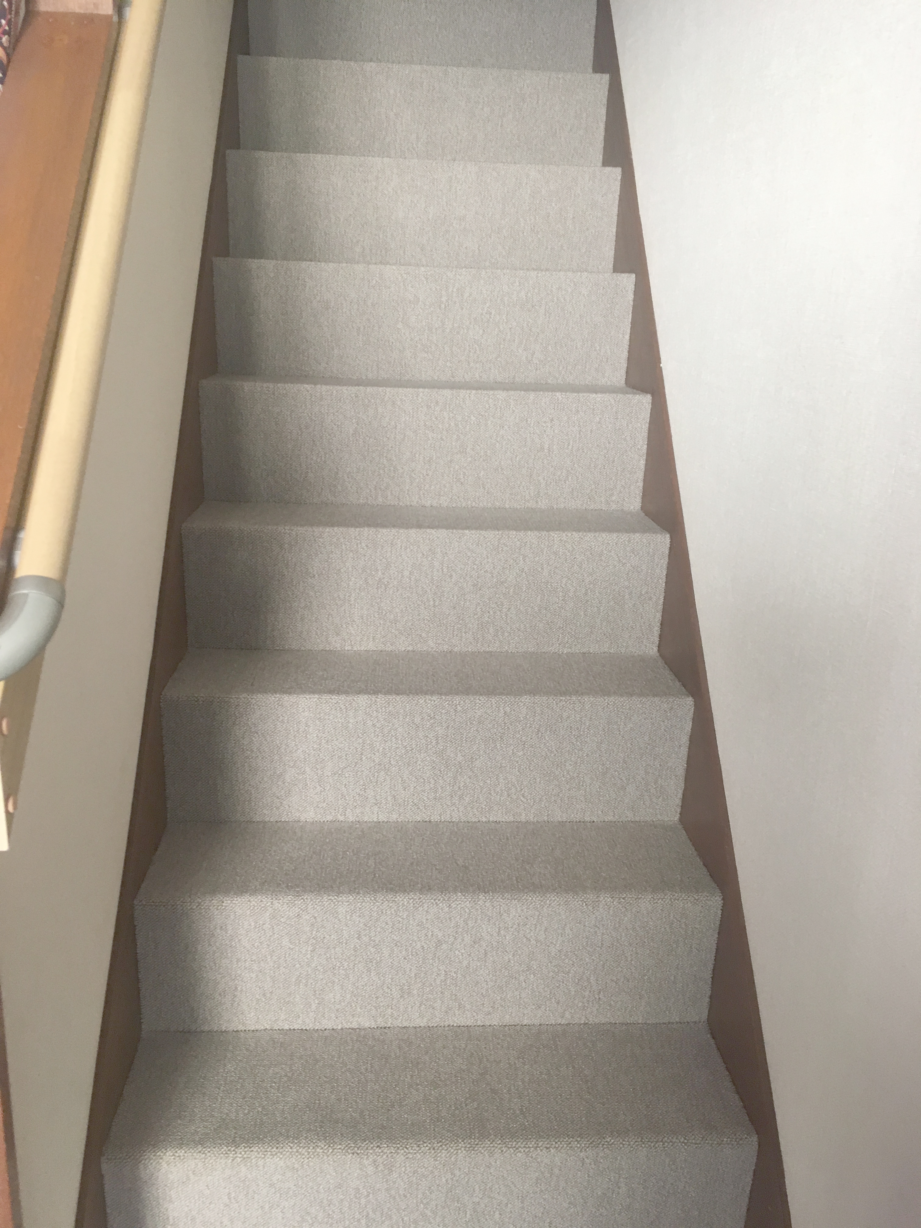 階段にジュウタンを貼った施工事例です。滑りにくく、きれいに仕上がりました。