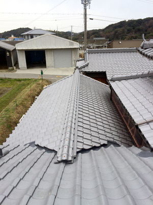 雨漏りがひどく、本葺瓦から簡略瓦に葺き替えた施工事例です。谷樋もステンレス製に取り替えたので、長持ちします。