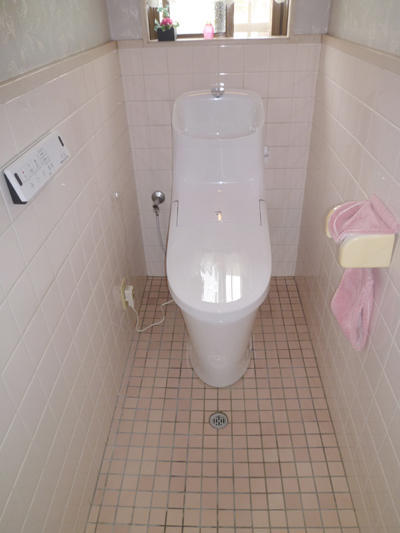 長年使用した分割タイプのトイレを、一体型の節水トイレに交換した施工事例です。