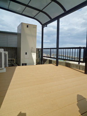 掃き出し窓からテラスに出るために、人工木デッキを新設した施工事例です。