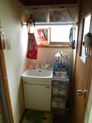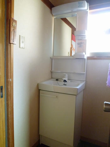 洗面台にミラーがなかった為、ミラー付きの洗面台に交換した施工事例です。