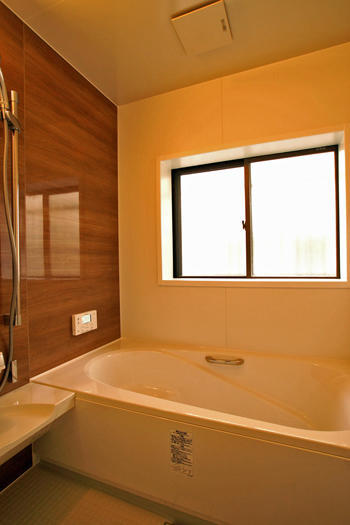古くなった在来工法の浴室からシステムバスに取替えた施工事例です。タイルの為、冬は冷たい浴室でしたが、システムバスに変更する事により緩和しました。段差のあった浴槽もバリアフリー対応になった為、楽になりました。