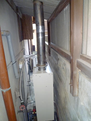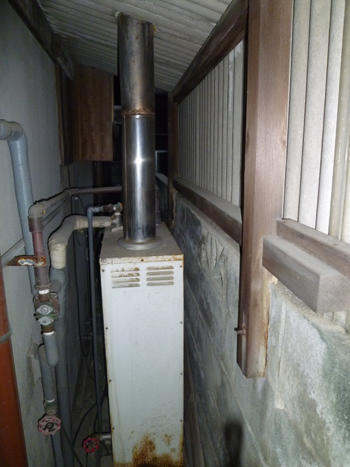 約30年使用した石油給湯器交換の施工事例です。本体と共にタンクも交換しました。