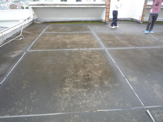 雨漏りのあった陸屋根の防水工事の施工事例です。全面ウレタン防水にて施工しました。
