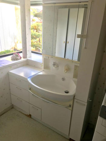 築20年近くなってくると水まわり設備の老朽化は水漏れ、腐食等様々な形で現れてきます。今回は洗面所をフルリフォームした施工事例です。
