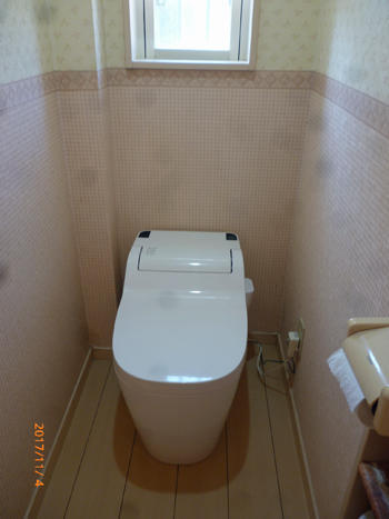 ウォシュレットより漏水し、老朽化しているので新しい便器に取り替えた施工事例です。