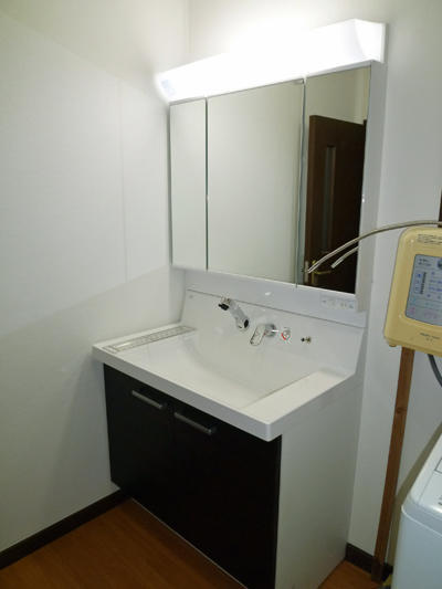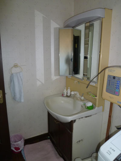 約20年使用した間口750の洗面台を、間口900の洗面台に交換し壁・天井のクロス、床のCFを交換した施工事例です。