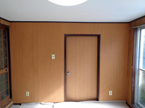 既存の天井と壁に下地合板を重ねて貼り、クロスを施工した事例です。