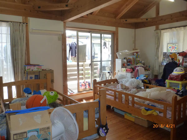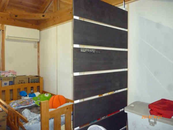 2階子供室に将来取り外せる木製建具の間仕切りしたリフォーム事例です。