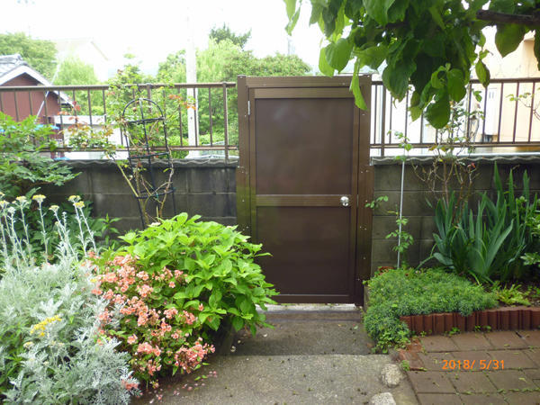 防犯上門扉をローコストで高くしてほしいとの要望からロンカラードア用いて