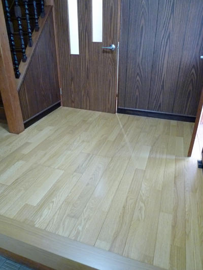 玄関の床が暗かった為、明るめのフローリングを重ね張りした施工事例です。