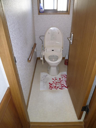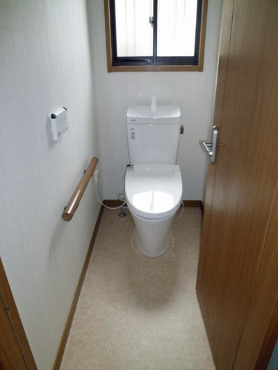 約20年使用したトイレを節水型トイレに交換しました。床のクッションフロアと壁のクロスも貼り替えた施工事例です。