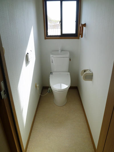 約20年使用したトイレを節水型トイレに交換しました。洗浄便座を取り付け、床のクッションフロアと壁のクロスを貼り替えた施工事例です。