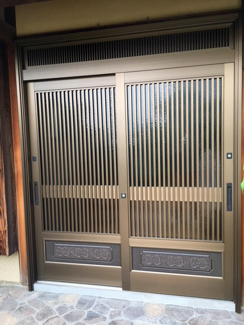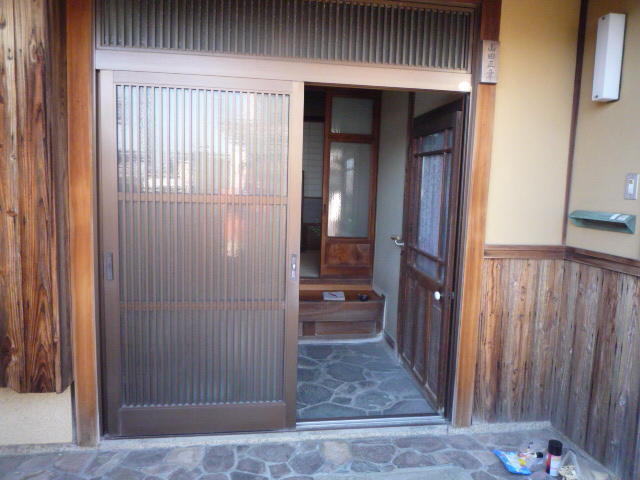 今ある枠の上から、新しい枠を取り付けるカバー工法で、片開きドアから引戸タイプに取替えました。外壁に合わせてモダンなデザインで、使い勝手がずいぶん良くなりました。カバー工法は1日で終わるので、経済的で、壁・床を傷める心配が少ないので、仕上がりがとても美しいです。