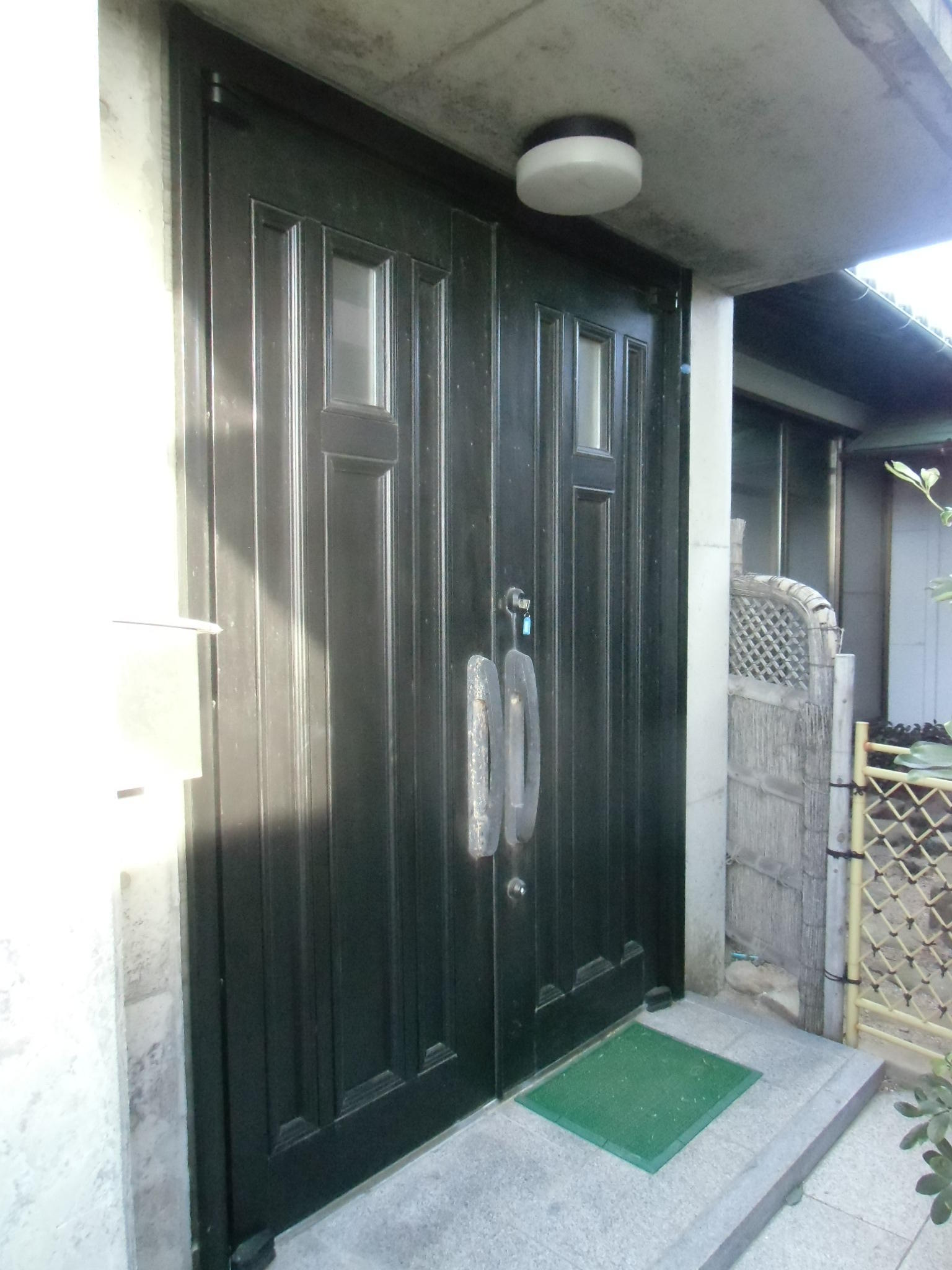 古くなった両開き戸を引戸に交換しました。引戸になったので出入りし易くなりました。カバー工法なので約1日で施工でき、内外壁や土間の修繕工事もなく安く仕上がります。