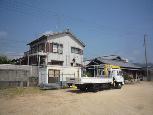 外壁のヒビ割れから雨水が浸水し庇が腐食していました。庇を取替えするのに足場が必要でしたので同時に外壁も塗装しました。