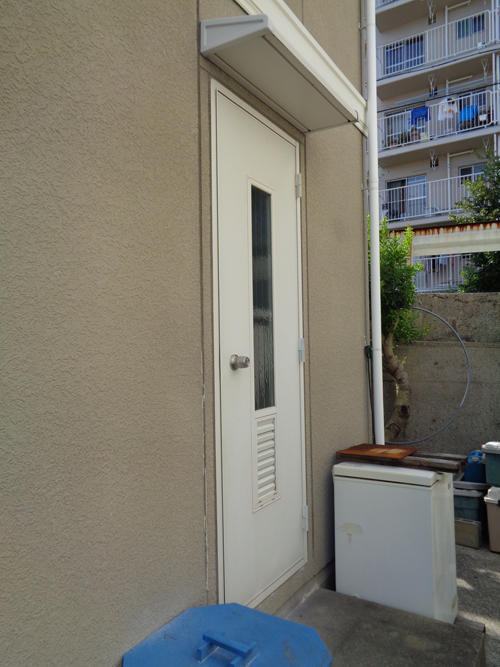 古くなった勝手口ドアを交換しました。採風タイプでペアガラスにしたので風や光が入るようになり、結露対策かつ断熱性能も向上しました。面格子付きなので、防犯対策も考慮されてます。