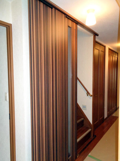 1階の廊下から2階のLDKにあがる階段に引戸を施工した事例です。冷暖房の効率があがり快適になりました。また音漏れも軽減されました。