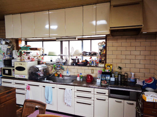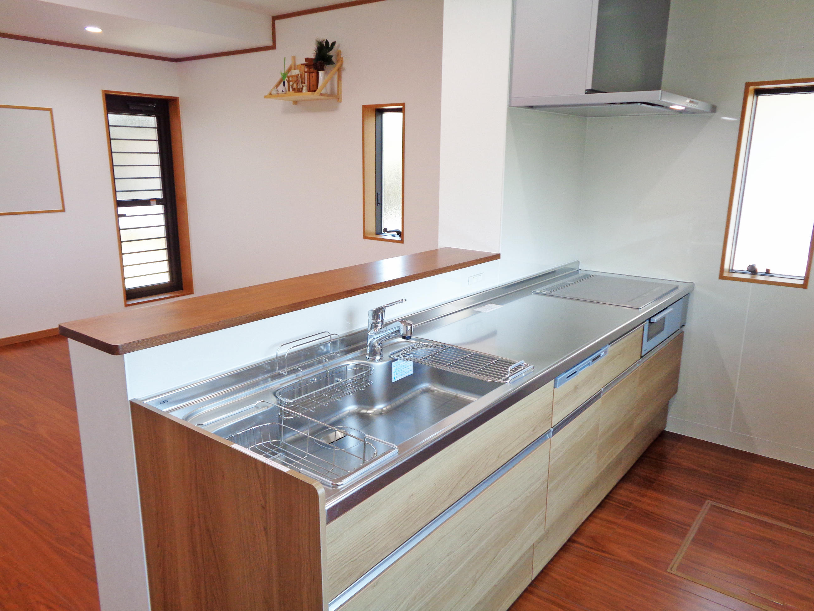 壁付けキッチンから対面キッチンにした事例です。調理しながらもリビングの様子がよくわかる様になり、調理最中の裏側が見えないのでお客さんが来ても安心です。