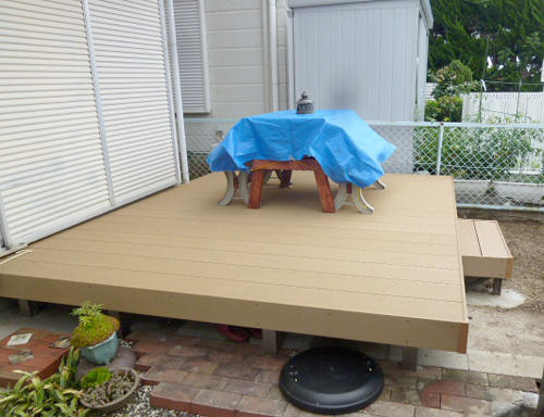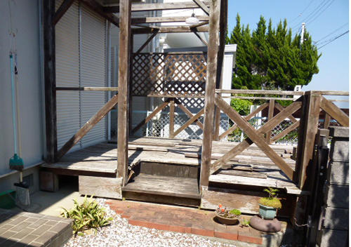 木製のデッキも当初は良かったのですが、朽ちてきて、今回は人工木材を採用。長く使えて、お手入れ簡単。木のぬくもりも感じられて納得のデッキリフォーム。