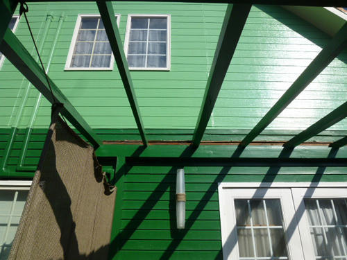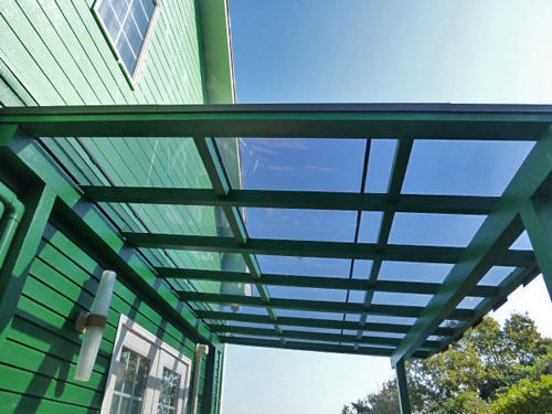 台風でテラスの屋根(ポリカーボネート)が飛んでしまいました。垂木の補強をして新しい材料で張替えました。
