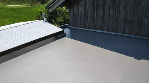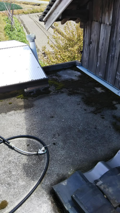 ブロック造の建物に雨漏り修理工事です。経年劣化の為、下地左官処理後に塗膜防水にて施工した施工事例です。