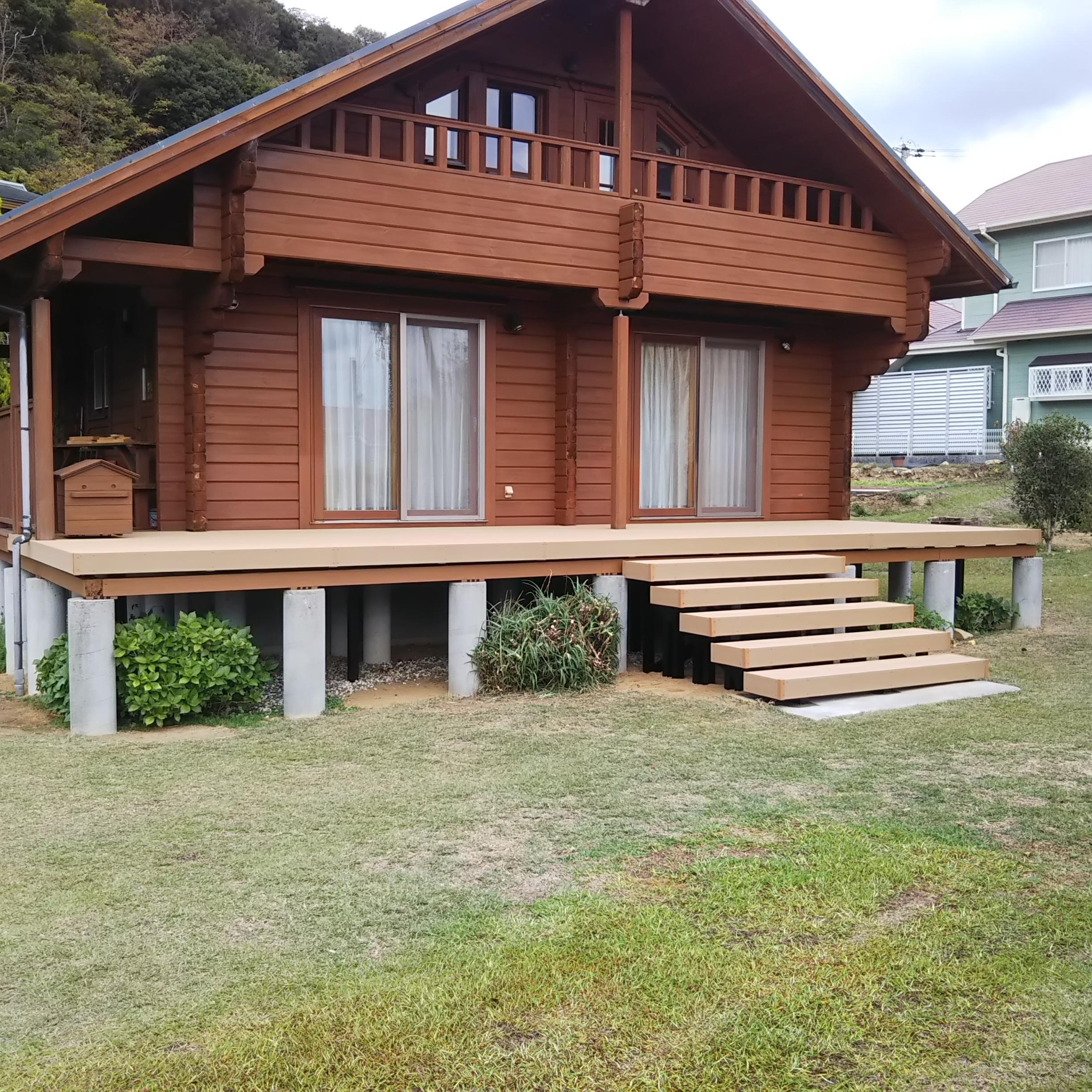 経年劣化により、どんどん床板が抜けていったため、腐らない人工木のウッドデッキにやり替えたリフォーム事例です。 基礎と土台は再利用し、デッキ部分を新しくしました。