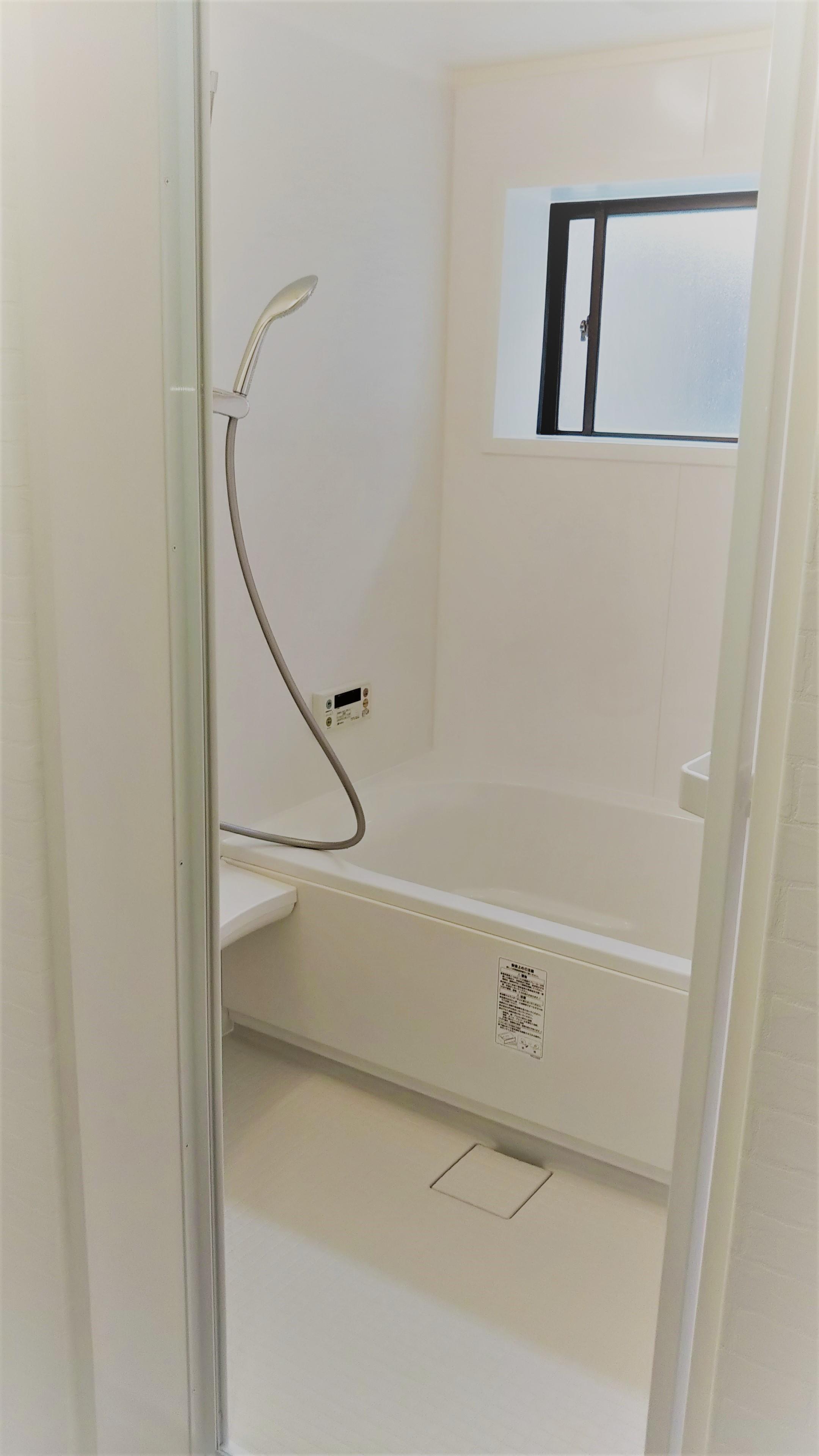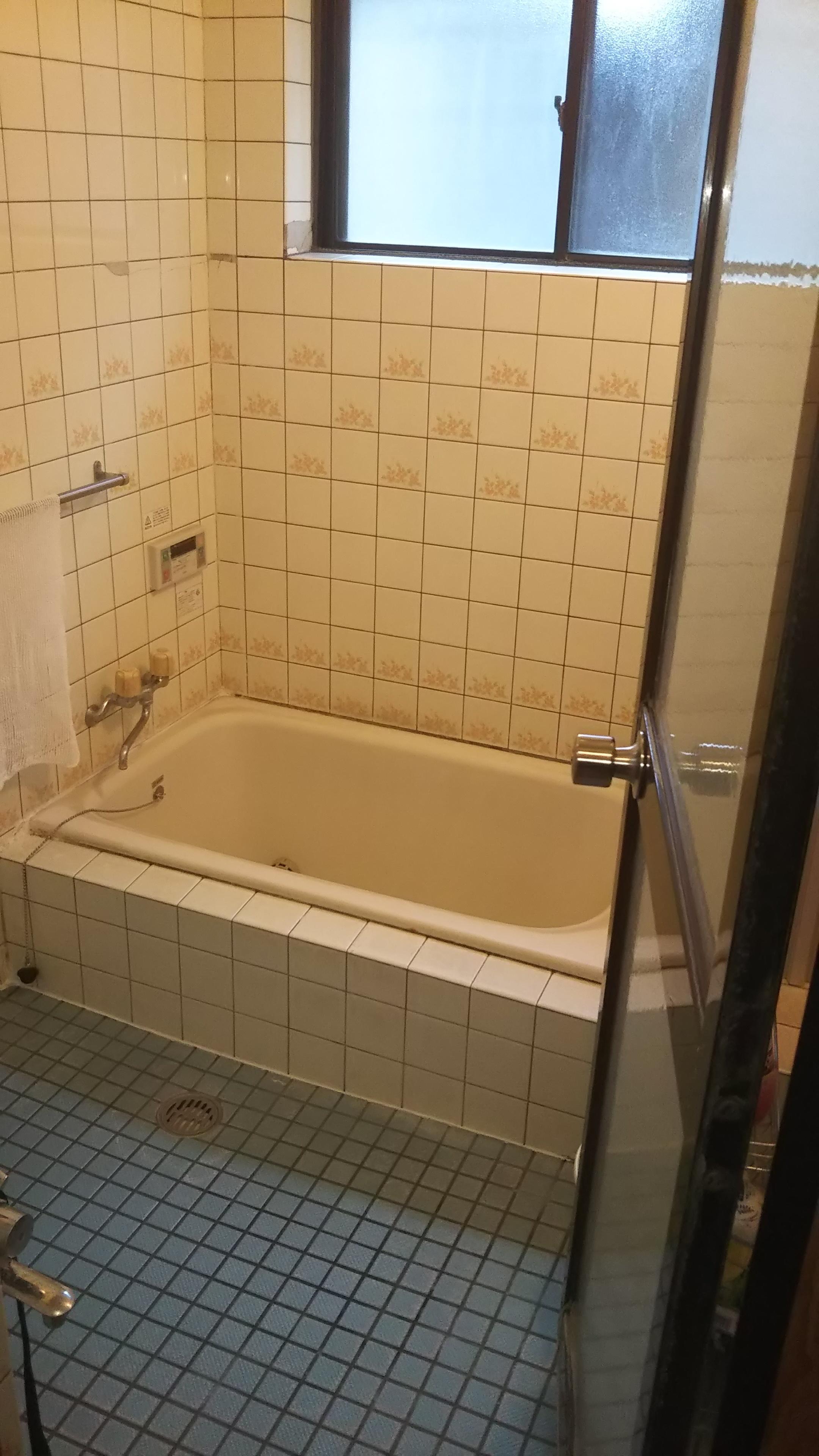 タイル浴室からUBへリフォームした事例です。入口が狭く既存のままでは設置不可能だったため間仕切の移動も行いました。